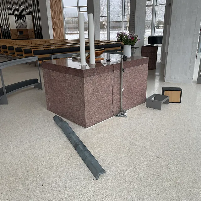 Natten til tirsdag (den 23. marts 2026) var der indbrud i kirken. Tre mørkklædte mænd stjal korset fra alteret og dåbsfadet fra døbefonden. Alarmen gik kl. 23.45 og politiet var meget hurtigt fremme sammen med alarmselskabet, men tyvene var væk med det stjålne...